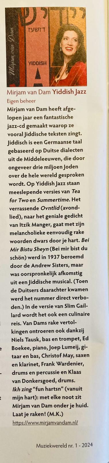 Een mooie Review van de CD Yiddisch Jazz in Muziekwereld nr. 1 2024. Klik op de tekst link of op de kleine vierkante afbeelding om de review te lezen >>